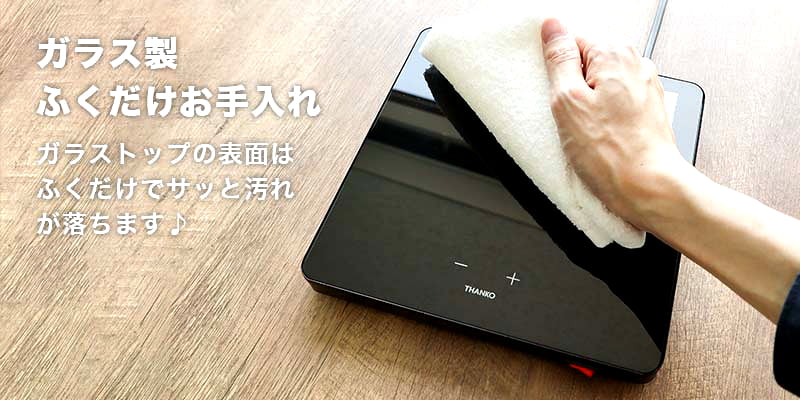 表面がガラストップなので、さっと拭くだけで汚れが落ちます。